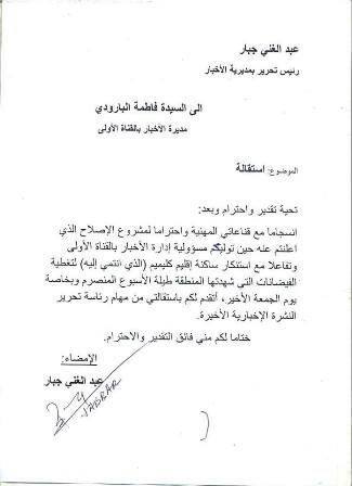 رئيس تحرير نشرة الأخبار بالقناة الأولى يقدم استقالته من مهامه احتجاجا على طريقة تغطية الفيضانات الأ 2 ديسمبر 2014 الساعة 9 و 52 دقيقة شارك شارك