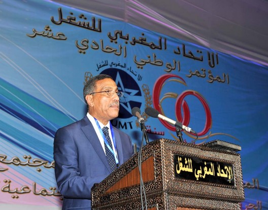 استطاع المؤتمر الحادي عشر للاتحاد المغربي للشغل أن يجمع جميع الأقطاب السياسية والنقابية والحقوقية، حيث شهد المؤتمر الذي انعقد أمس الجمعة، حضور عدد من وزراء وعلى رأسهم رئيس الحكومة عبد الإله بنكيران الذي كان دائم الخلاف مع النقابة، كما شهد المؤتمر، حضور عدد من أمناء الأحزاب السياسية وامناء النقابة المتحالفة مع الاتحاد الغربي للشغل التي اعتبرها ميلود موخاريق، الأمين العام للاتحاد المغربي للشغل ساهمت خلال تحالفها السنة الماضية، في تقوية النقابة للدفاع عن الوحدة النقابية و الطبقة الشغيلةوأضاف موخاريق في كلمة بمناسبة افتتاح أشغال المؤنمر أن الاتحاد يجدد التأكيد على التزام الطبقة العاملة المغربية واستعدادها الدائم للكفاح والتضحية من أجل الدفاع عن والوحدة الترابية للمملكة.ودعا إلى تطوير العمل النقابي داحل الاتحاد وفق المعطيات الجديدة ، لتجاوز مكامن الضعف و مواكبة التطورات والمتغيرات المتسارعة، والتكيف معها خدمة لمصالح منخرطيها ولأهداف ومبادئ الاتحاد، مشير الى انه لابد من القيام بالتصحيحات اللازمة التي ستؤهل تنظيم الاتحاد لاستعادة عافيته وفاعليته وتوسيع العضوية داخله لتشمل كل القطاعات المنظمة أو غير المهيكلة سواء تعلق الأمر بالقطاع الفلاحي والصناعي والخدماتي والوظيفة العمومية والمؤسسات العمومية.ويبدو ان حضور بنكيران الى المؤتمر لم يسمح لموخاريق بتوجيه سهام النقد للحكومة، كما اعتاد في جميع اجتماعات النقابية، حيث دائما ما يتم تحميل مسولية تدهور وضعية الطبقة العاملة إلى الحكومة، لكنه اكتفى فقط بالتلميح الى ان المؤتمر بعقد في ظرف وضعية اقتصادية جد صعبة ولابد من اشراك النقابة العمالية للنهوض بالوضع الاقتصادي، لافتا الى ان الاتحاد المغربي للشغل طيلة عملة التقابي الذي امتد الى 60 سنة، لم يسبق اثر عليه اي حزب سياسي او حكومةيشار الى ان سيشارك في المؤتمر الذي ستنتهي أشغاله غدا السبت حوالي 2000 مؤتمرة ومؤتمر، يمثلون مختلف التنظيمات النقابية المهنية، المؤطرة للطبقة العاملة المغربية، في القطاع الخاص، والقطاع العام، والمؤسسات العمومية، المنضوون تحت لواء الإتحاد، منتدبين عن مختلف القطاعات المهنية، والجامعات، والنقابات الوطنية، و58 اتحاد جهوي ومحلي، من مختلف المناطق المغربية.وتشكل المرأة العاملة نسبة 30 في المائة من العدد الإجمالي للمؤتمرات والمؤتمرين، منهم حوالي 38 في المائة من الشباب، تقل أعمارهم على 35 سنة، حيث ألحت قيادة الإتحاد على إعطاء المكانة الملائمة للشباب والنساء في هذه المحطة النضالية والتنظيمية الهامة لدورهم الحيوي المتصاعد في الكفاح العمالي.