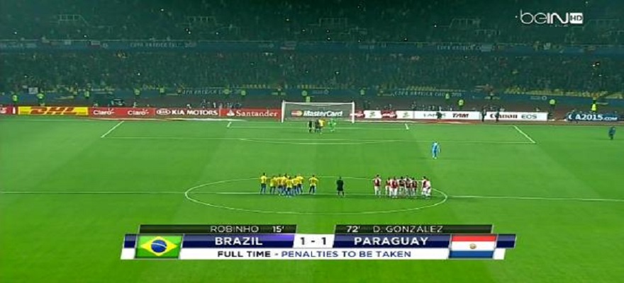 الداخلةالرأي-س.لتمكن منتخب البراجواي من إقصاء المنتخب البرازيلي ضمن نهائيات كاس “كوبا أمريكا”، التي تقام بالشيلي.حيث سجل اللاعب روبينهو هدف البرازيل الأول في الدقيقة 15، قبل أن يتمكن اللاعب البراجواياني خوليو غونزاليز من تعديل النيجة في الدقيقة 70.واحتكم المنتخبان إلى ضربات الحظ التي منحت التفوق للبرجواي بعد أن انتهت النتيجة بثلاثة أهداف مقابل أربعة.ونجح منتخب البارجواي في تكرار فوزه على البرازيل بعد الاطاحة به من البطولة السابقة “الارجنتين 2011” ومن الدور ربع النهائي ايضا ليكرس الباراجويين عقدتهم للسيليساو في مباراة شهدت تفوق المدرب الارجنتيني دامون دياز، على البرازيلي دونجا في ادارة اللقاء تكتيكيا ليتأهل الى المربع الذهبي في بطولة تشهد تواجد 4 مدربيين أرجنتينيين في نصف النهائي.